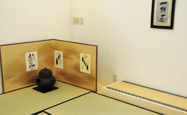 - 十二畳広間-立札席新和風、組立式立礼柵等、すべて置き畳で造る。